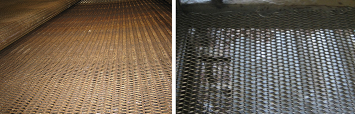 不銹鋼網(wǎng)帶清洗前                                           不銹鋼網(wǎng)帶清洗后